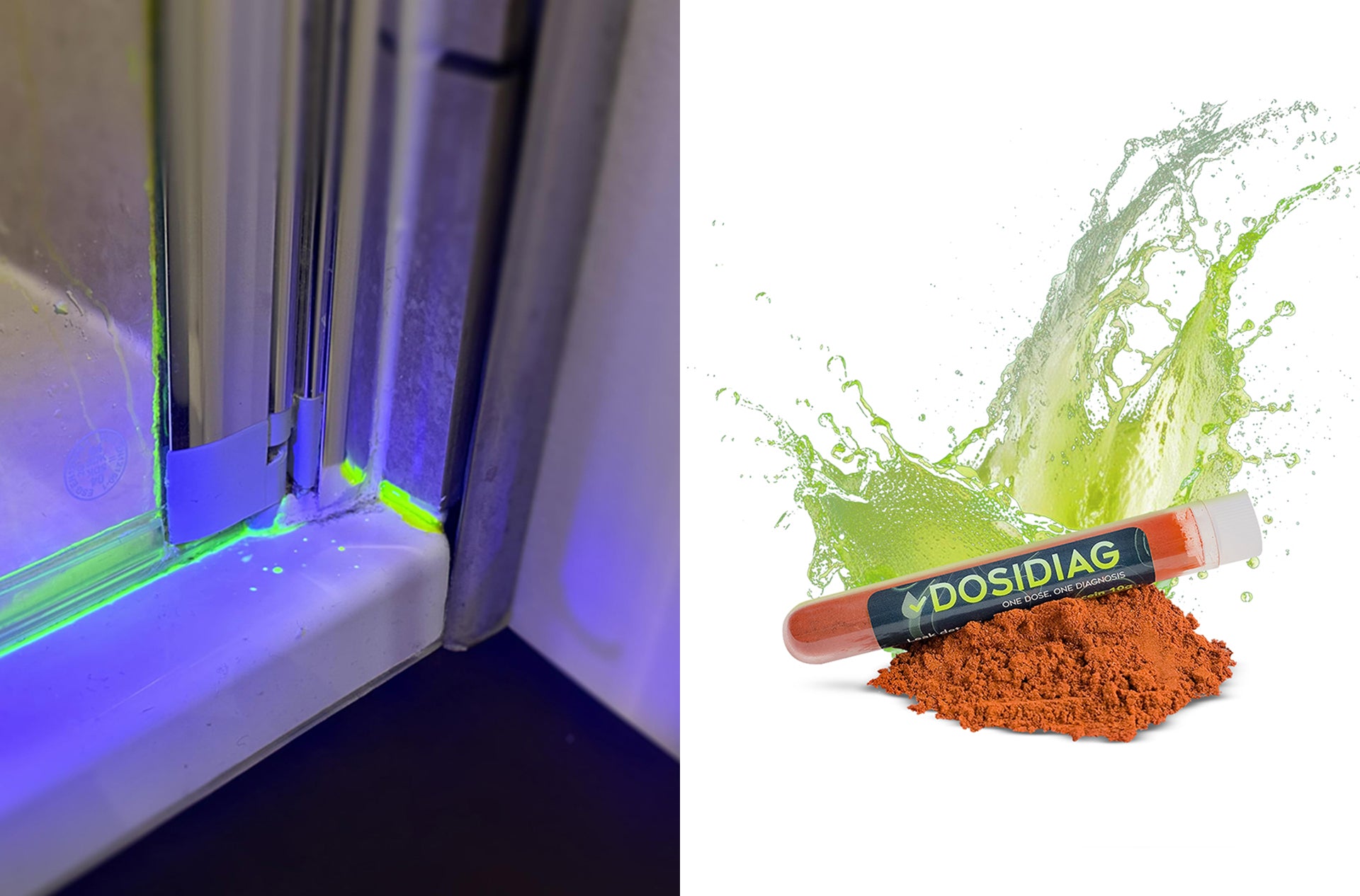 Grâce à sa fluorescéine concentrée, le détecteur universel DOSIDIAG révèle instantanément les fuites invisibles sur tous types de surfaces :